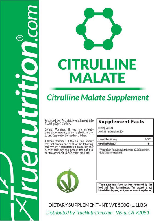 True Nutrition - Citrulline Malate Powder - Supports Nitric Oxide Production, Blood Circulation, and Improved Endurance - 500g