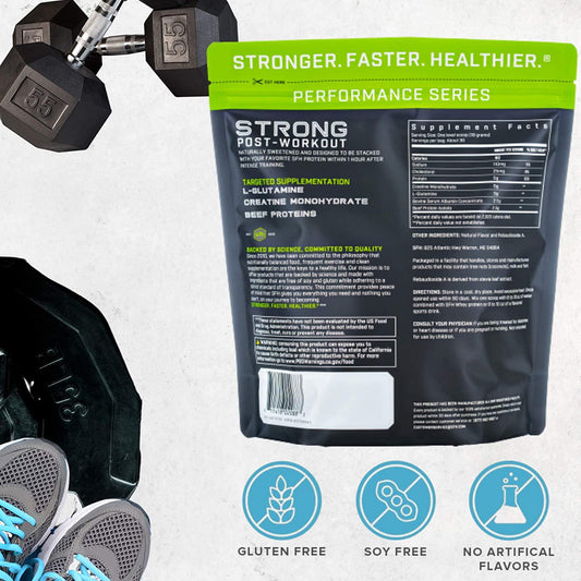 STRONG Muscle Builder by SFH | Creatine Glutamine and Serum Beef Protein for Lean Muscle Growth and Strength | Keto Creatine Workout Supplements for Men and Women | Free of Gluten Sugar Soy GMO (1.19lb Bag)