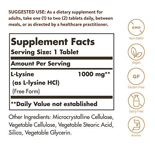 Solgar L-Lysine 1000 mg, 250 Tablets - Enhanced Absorption and Assimilation - Promotes Integrity of Skin and Lips - Collagen Support - Amino Acids - Non-GMO, Vegan, Gluten Free - 250 Servings