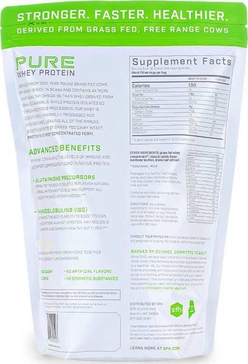 Stronger Faster Healthier, Whey Protein Pure Vanilla, 31.6 Ounce