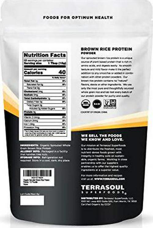 Terrasoul Superfoods Organic Sprouted Brown Rice Protein Powder, 1.5 Pounds