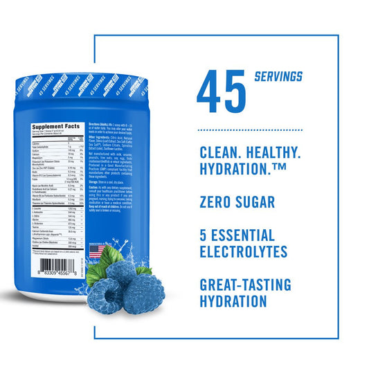 Biosteel Zero Sugar Hydration Mix, Great Tasting Hydration with 5 Essential Electrolytes, Blue Raspberry Flavor, 45 Servings per Tub