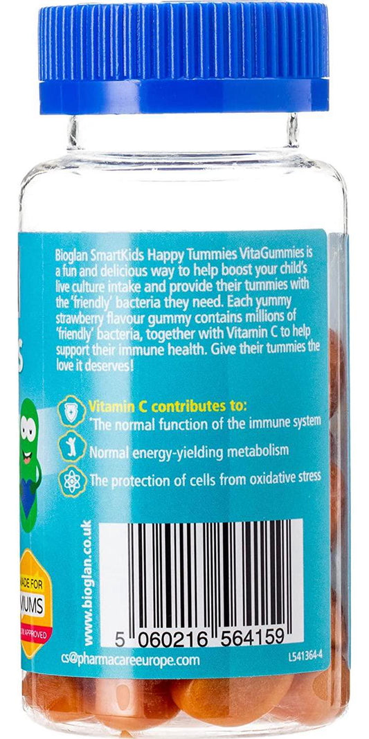Bioglan SmartKids Happy Tummies | 1 Billion Live Bacteria | CFU | Vitamin C | Immune Support | 30 Gummies