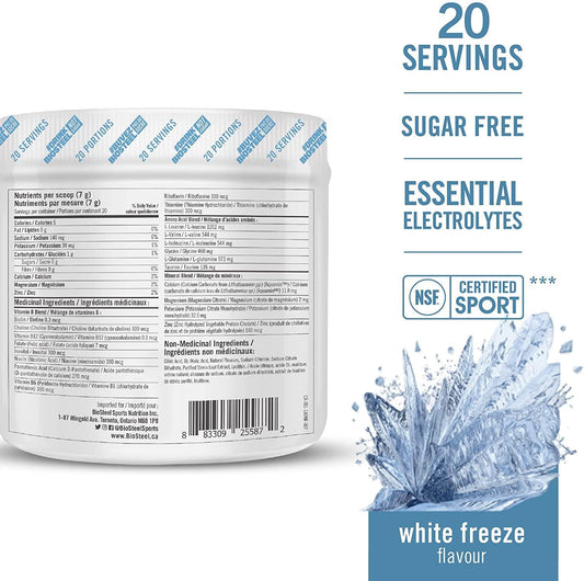 BioSteel Hydration Mix, Sugar-Free with Essential Electrolytes, White Freeze, 20 Servings