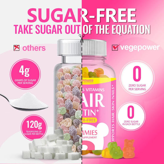 Biotin 10000mcg Gummies Hair-Growth Sugar-Free - VEGEPOWER Vegan Vitamins Supports Healthy Skin and Nails Non-GMO Multivitamin Supplement for Women Men 120Count