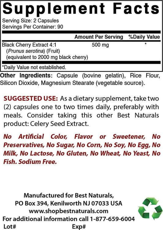 Best Naturals Black Cherry 1000 Mg Capsule, 180 Count