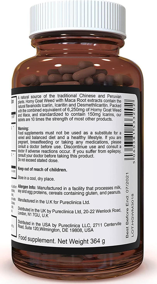10X Horny Goat Weed Extract (3750mg) Maca Extract (2500mg) x 720 Tablets - (4 Bottles of 180 Tablets) with 5mg Black Pepper Extract for 300% Increased Absorption: SKU: HGWMx4