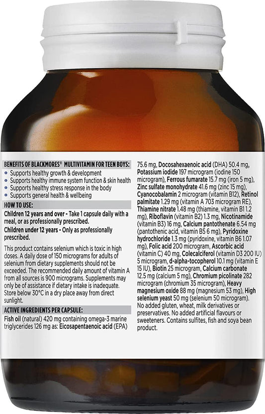 Blackmores Multivitamin for Teen Guys 60 Capsules, White (BMRTEEGUY)