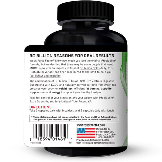 Force Factor Probioslim Extra Strength Probiotic Supplement, 30 Billion Cfus, 120 Capsules