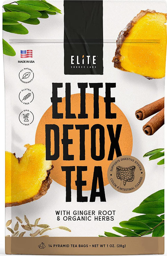 Elite Detox Tea For Body Cleanse - Get Rid Of Bloating and Constipation With Natural Organic Herbal Colon Cleanse Tea. 7 Loose Dried Herbs Including Senna, Ginger, and Fennel tea. 14 Day Detox Tea Bags
