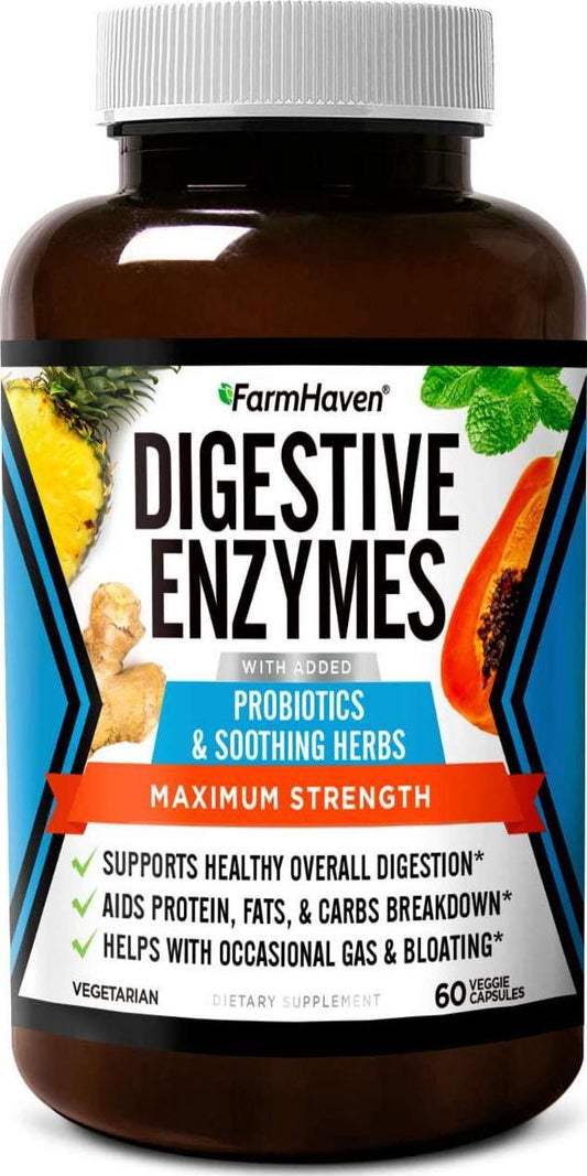 FarmHaven Digestive Enzymes with 12 Probiotics and 6 Soothing Herbs | Bromelain, Protease, Papaya and More Support Healthy Digestion | Helps Bloating, Gas, Constipation | Vegetarian, 60 Capsules