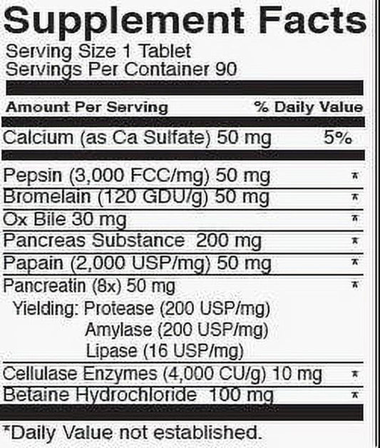 DIGESTIVE ENZYMES SUPPLEMENT - Includes Purified Ox Bile Salts - Tablets for No Gallbladder Sufferers - Enzyme for Digestion and Gas Relief - Helps Bloating, Acid Reflux, Constipation and Repair Leaky Gut