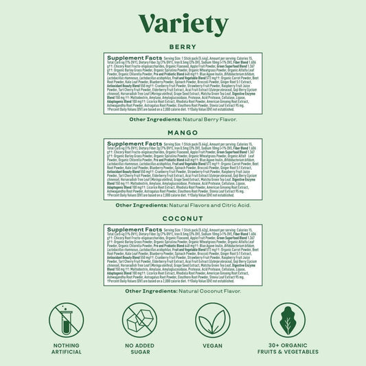 Bloom Nutrition Super Greens Powder Smoothie Mix, 15 Stick Packs - Probiotics for Digestive Health & Bloating Relief for Women, Digestive Enzymes with Organic Superfoods for Gut Health (Variety)