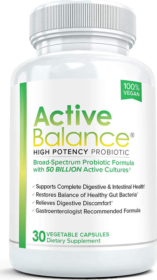 Active Balance Probiotic 50 Billion CFUs: Pharmacist Recommended Probiotics for Women and Men | Shelf Stable Acidophilus Supplement | Ease Bloating, Supports Digestive, Colon and Gut Health, 30 Caps