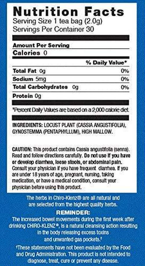 Chiro-Klenz Detox Tea for Colon Cleanse Natural Herbal Tea for Bloating Relief and Weight Loss for Women and Men / Gentle Cleansing Action for Full Body Detox / No Sugar, Caffeine, or Gluten