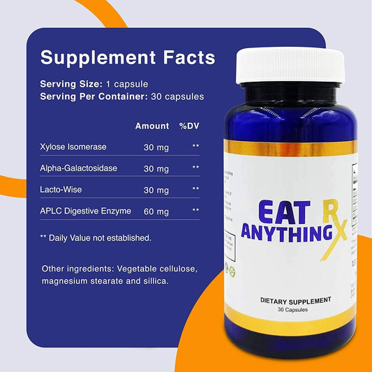 Eat Anything Rx Digestive Enzymes, Fructose Malabsorption Aid, More- Prebiotics, Probiotics and Xylose Isomerase -Digestion and Lactose Absorption -May Help Bloating, Gas Relief, IBS and Leaky Gut (60)