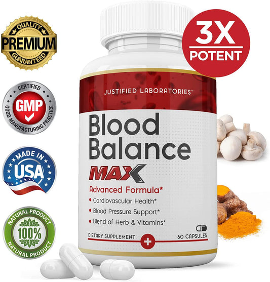 (2 Pack) Blood Balance Advanced Max Formula All Natural Blood Pressure Sugar Support Supplement Pills 120 Capsules