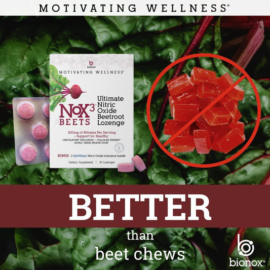 Bionox Nox3 Organic Beetroot with Nitric Oxide Test Strips, Blood Pressure Support, Delicious Dark Cherry Flavor, Beet Superfood, 30 Days