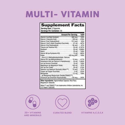 Bloom Nutrition Daily Multivitamin for Women | 18 Essential Nutrients: Vitamin A, B1, B2, B3, B6, B12, C, D, E, K, Folate, Iron, Magnesium, Zinc and More | 60 Capsules