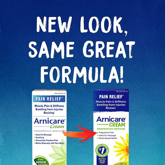 Boiron Arnicare Cream for Soothing Relief of Joint Pain, Muscle Pain, Muscle Soreness or Stiffness, and Swelling from Injury - Fast Absorbing and Fragrance-Free - 2.5 oz