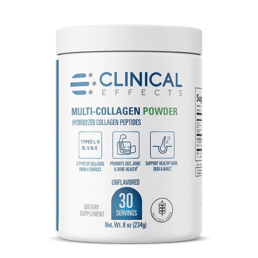 Clinical Effects Multi-Collagen Powder - Collagen Dietary Supplement - 8Oz - 30 Servings - 5 Types of Quality-Sourced Multi-Collagen to Support Joint, Bone, Skin and Nail Health - Fast Absorption