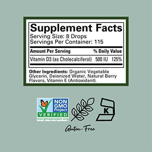 ChildLife Essentials Organic Vitamin D3 - Vitamin D Drops for Kids, Supports Immune, Respiratory, Heart, and Bone Health, All-Natural, Gluten-Free, Non-GMO - Natural Berry Flavor, 1 Fl Oz Bottle (Pack of 2)