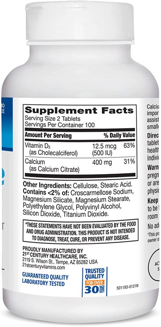21St Century D3 Calcium Supplement Tablets, 600 Mg, 400 Count