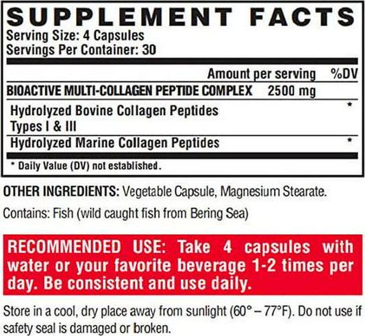 Bioactive Collagen Peptides | Joint Support, Bone Strength | Skin, Nails, and Hair Health | 120 Veggie Capsules