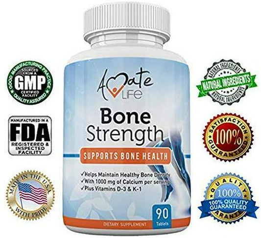 Bone Strength - Calcium Magnesium for Bone Health- Calcium Citrate with Vitamin D3 for Bone Density- Calcium Supplement for Women-High Absorption Calcium 1000mg- 90 Tablets Made USA by Amate Life
