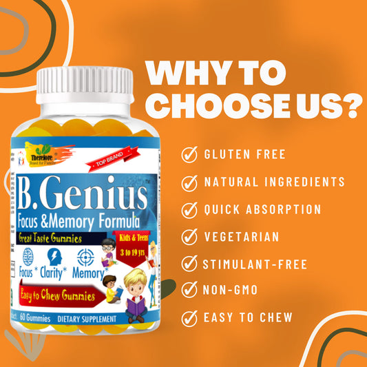 B.Genius Brain Booster Supplement & Brain Support Gummy Vitamins for Kids & Teens, Focus Gummies for Kids