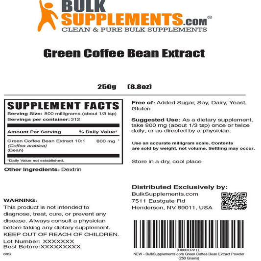 Bulksupplements.Com Green Coffee Bean Powder - Green Coffee Bean Extract for Weight Loss (250 Grams - 8.8 Oz)