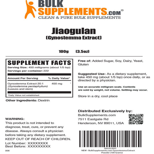 Bulksupplements.Com Gynostemma Extract Powder, 500Mg - Brain, Heart, & Liver Support (100G - 200 Servings)