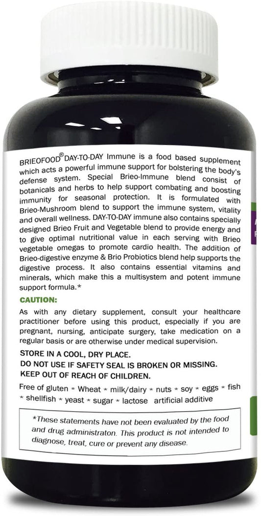 Brieofood Immune 90 Tablets, Food Based Daily Immune System Booster Supplement Made with Vegetable Source Omegas, Probiotics and Herbal Blends