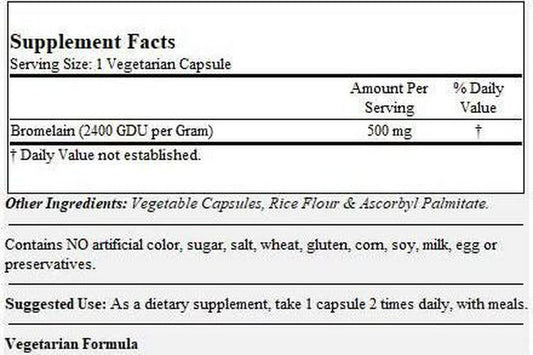 Bromelain 500mg (2400 GDU/Gram) (120 Vegetarian Capsules) - No Stearates - Vegan - Non GMO - Gluten Free