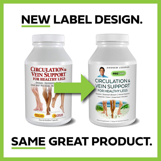 Andrew Lessman Circulation & Vein Support for Healthy Legs 60 Capsules - High Bioactivity Diosmin, Butcher'S Broom, Visibly Reduces Swelling & Discomfort in Feet, Ankles, Calves, Legs