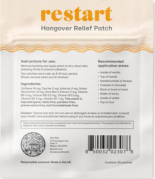 Dew Well - Restart Hangover Support Supplement Patch - Ingredients to Promote Energy - Caffeine, Taurine, and Acai Berry - Easily Take On and Off - 6 Patches
