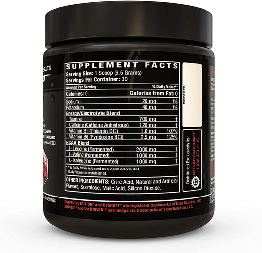 Driven DYSRUPT Pre-Workout Powder - BCAAs, Caffeine and Electrolytes - Low Carb/Sugar Free Energy Drink Supplement - Increases Fat Burning, Physical, and Mental Endurance for Focus and Building Muscle Mass