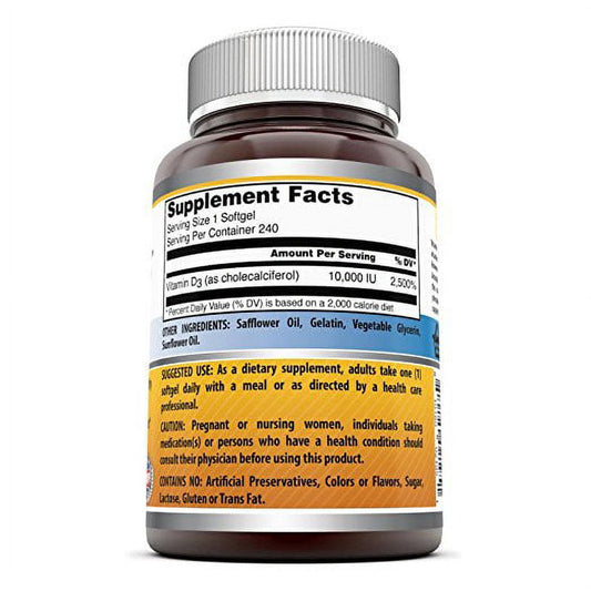 Amazing Formulas Vitamin D3 Cholecalciferol - 10,000 Iu, 240 Softgels - Supports Calcium Absorption -- Essential for Bone Health -- Supports Healthy Immune Function