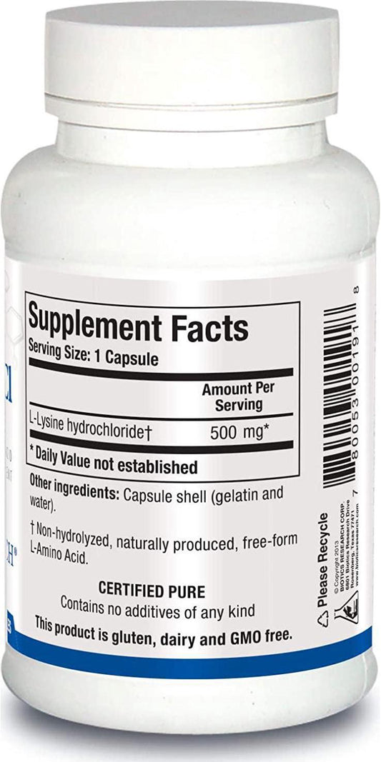 Biotics Research L Lysine HCI - Amino Acid L-lysine Supplement Promotes Energy, Boosts Immunity, Stimulates Calcium Absorption - 100 Capsules