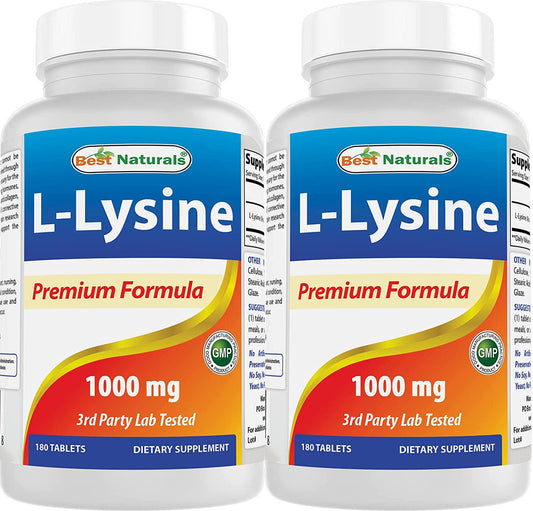 Best Naturals L-Lysine 1000mg 180 Tablets (180 Count (Pack of 2))