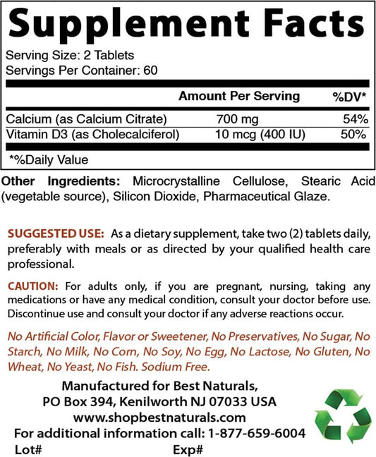 Best Naturals Calcium Citrate with Vitamin D-3 240 Tablets