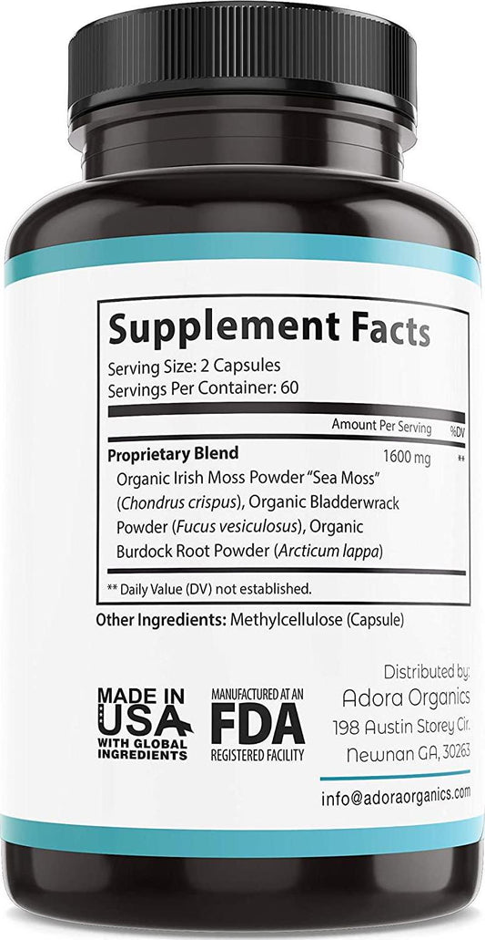 Adora Organics Sambucus Elderberry - 1400mg - 180 Capsules - Immune Support and Antioxidants