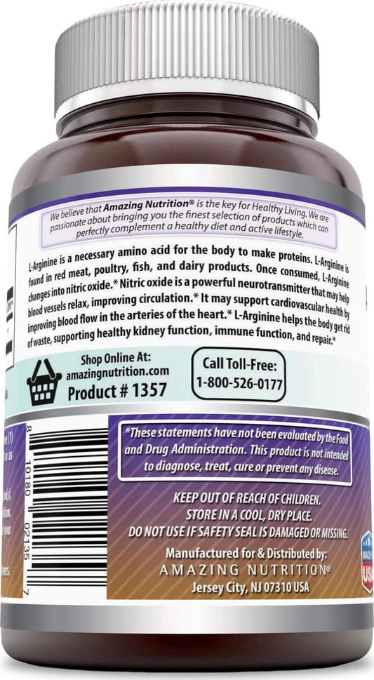 Amazing Nutrition L-Arginine 1000mg Supplement - Best Amino Acid Arginine HCL Supplements for Women and Man - Promotes Circulation and Supports Cardiovascular Health - Tablets (Non-GMO,Gluten Free) (120 Count)