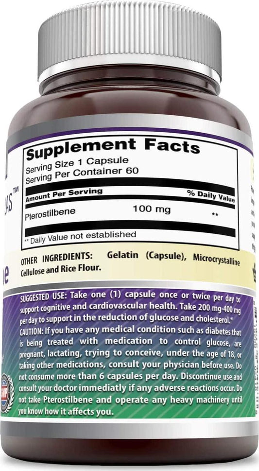 Amazing Formulas Pterostilbene - 100 Mg, 60 Capsules (Non-GMO) - Promotes Cognitive Function - Supports Glucose Levels in The Normal Range - Supports Cardiovascular Health