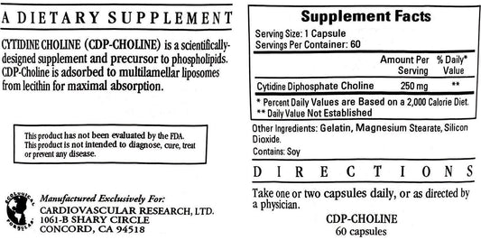 Cytidine Choline/CDP 250mg 60 Caps - Ecological Formulas/Cardiovascular Research