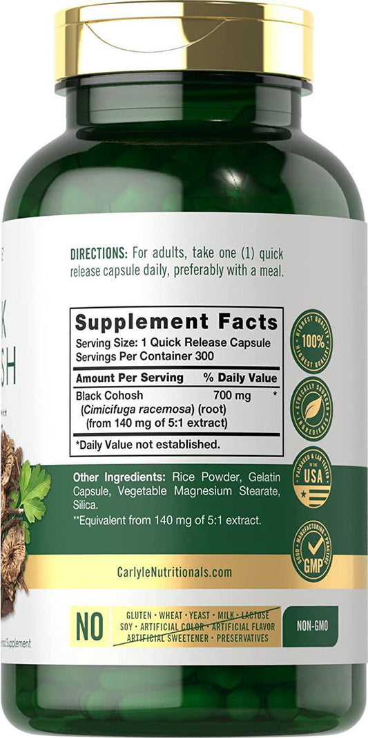 Black Cohosh Capsules | 540mg | 300 Count Non-GMO and Gluten Free Formula | Black Cohosh Root Extract Supplement | by Carlyle