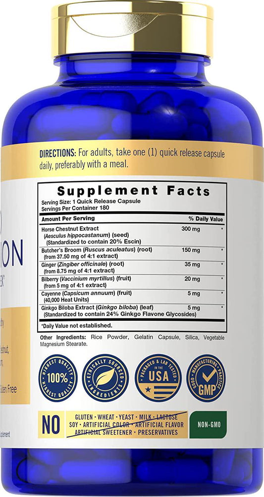 Blood Circulation Supplement | 180 Capsules | Supports Healthy Circulation | Non-GMO, Gluten Free | by Carlyle