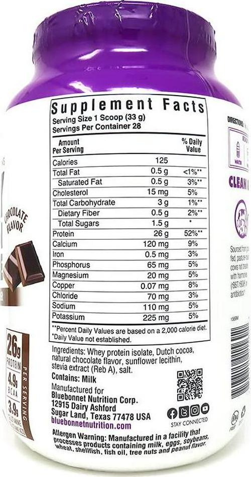 BlueBonnet 100% Natural Whey Protein Isolate Powder, Chocolate, 2 Pound