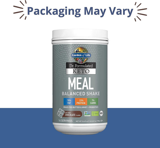 Garden of Life Dr. Formulated Keto Meal Balanced Shake - Chocolate Powder, 14 Servings, Truly Grass Fed Butter and Whey Protein Plus Probiotics, Non-GMO, Gluten Free, Ketogenic, Paleo Meal Replacement