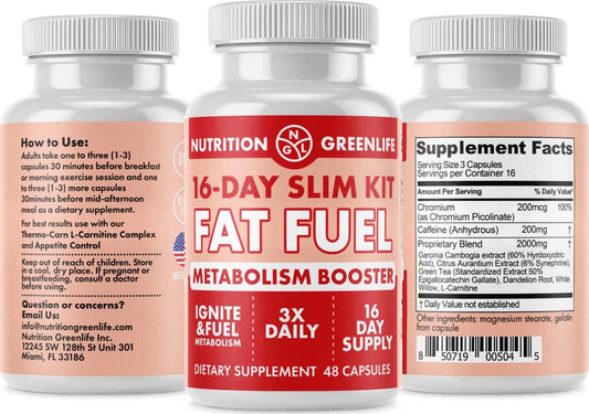 16-Day Weight Loss Fat Fuel - Premium Thermogenic Weight Management - Metabolism Booster - Chromium, Caffeine, Garcinia, Green Tea, L-Carnitine - Keto Friendly, Gluten Free